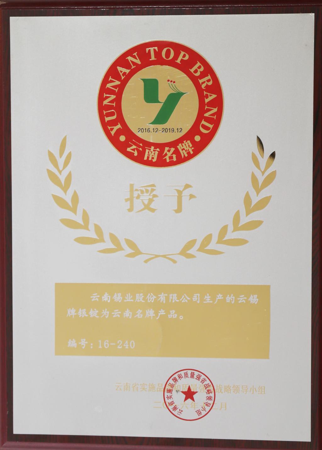 云錫牌鉛錠為云南名牌產(chǎn)品