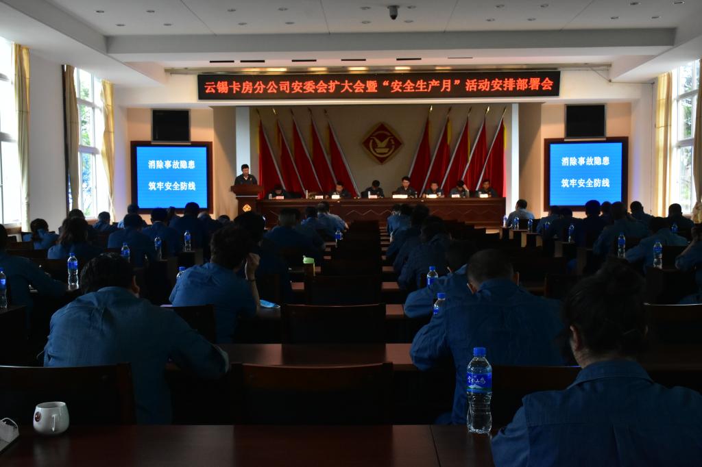5月28日,卡房分公司切合“消除事故隱患,筑牢安全防線”的主題,安排部署6月安全月活動及工作,進一步落實全員安全責任制,傳播礦山安全文化,持續開展“學安全、講安全、用安全”活動。