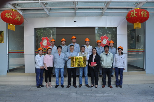 4月19日,李世虹專家工作室在錫化工材料公司有機錫基地掛牌。錫業股份科技和質量管理部副主任王青、虹鼎國際化工(南通)有限公司博士李世虹、錫化工材料公司副總經理楚斌、唐瑞祥,以及相關技術人員和管理人員參加掛牌儀式。
