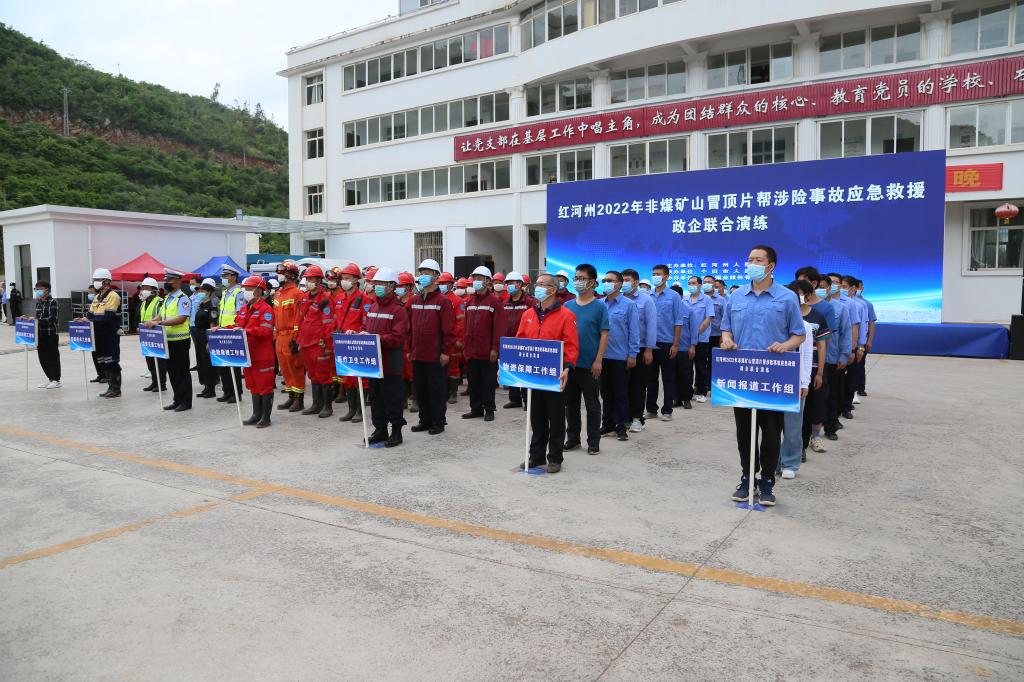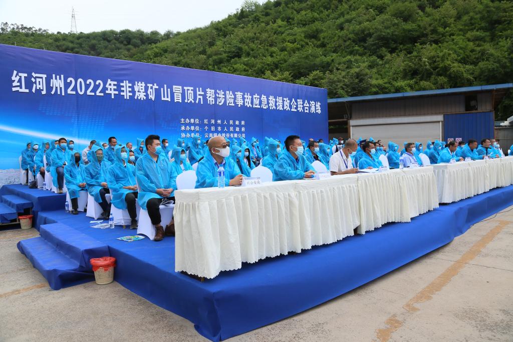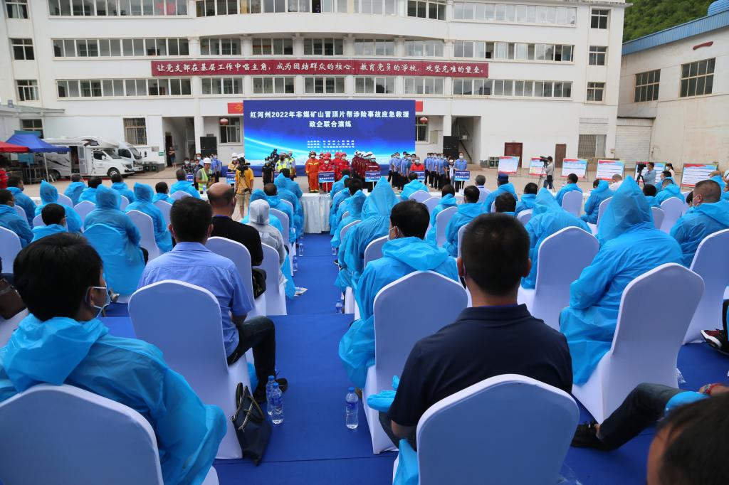 州公安局、州消防救援支隊、州國土資源局、州衛計委等有關部門負責人及紅河州13縣市應急管理局領導和州內部分重點非煤礦山企業負責人等觀摩了此次演練。