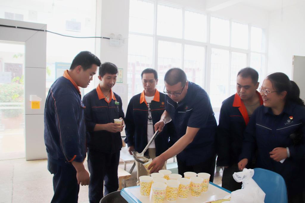 “輔助抱團”活力四射。“每天看一下自己班的成績,哪方面存在不足,在接下來的工作中就要多想辦法,決不能給班組丟分”坑口食堂班組的負責人說道。像這樣的小班組在輔助工序有多個,“每天在小班組之間進行競賽,以月為統計單位,計算每天的服務質量。我們會對競賽結果通過微信群進行季度通報,不斷增強組員干事創業的緊迫感和責任感?!薄氨R未動,糧草先行”。為確保競賽目標順利完成,坑口大力開展防暑降溫宣傳教育,切實提高工友防暑安全意識;確保用電設備設施安全,多措并舉改善工友作業環境;適時調整夏季高溫作業勞動和作息時間,確保工友人身安全。部門工會為職工送去綠豆湯、方便面、壓縮干糧等慰問品,并為參賽工區(隊組)配置部分微波爐、電磁爐、熱水壺及部分急救藥品,積極做好后勤保障,號召每一名管理人員、工友鼓足干勁、迎難而上,以嶄新姿態積極投身勞動競賽中,用激情和汗水創造不平凡的勞動業績。