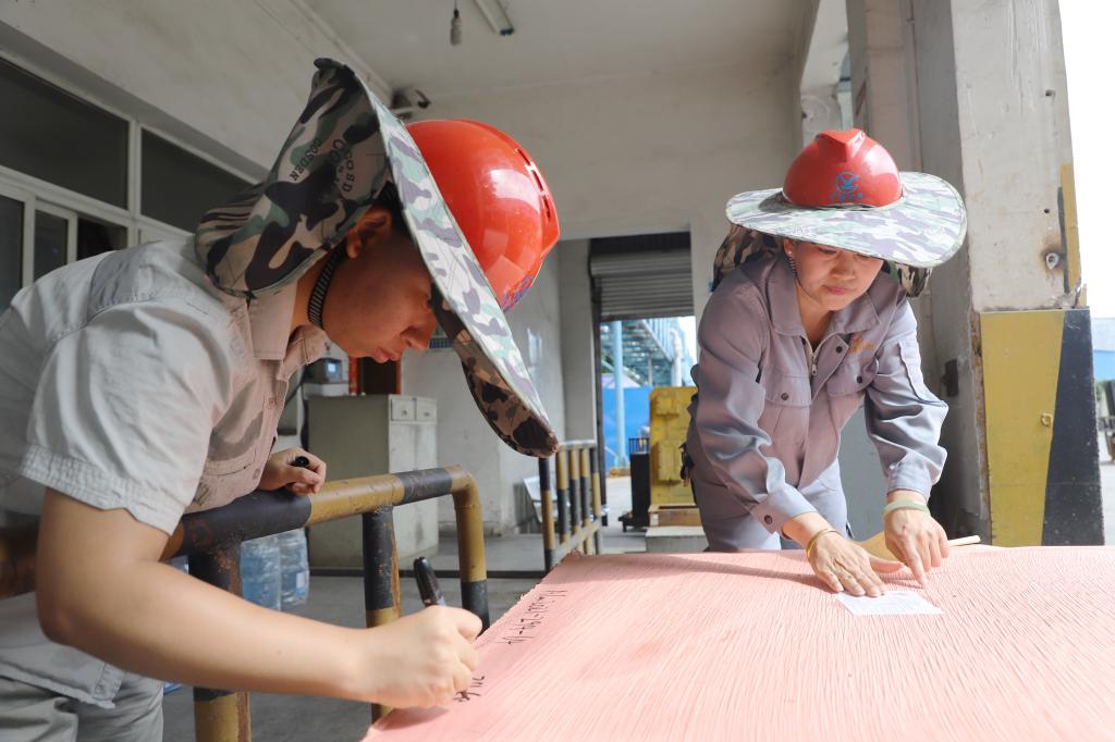 今年以來,銅業分公司全力沖刺更高產量目標,每天的陰極銅產品產量較往年增加了近20%。檢驗三組每天要完成160多捆銅產品的檢驗打包工作,也就是每天要應對2800多片銅板的質量檢驗。為了確保完成任務,班組也從原本的8小時常班制調整為常班加中班的兩班模式。檢驗三組的11名員工中只有2名男員工,每個班完成稱重、檢驗、定級、貼標簽等工作需要4個人,班組人數并不能較好滿足兩個班輪班作業。為了減輕中班壓力,常班人員主動承擔了更多的工作量,兩個班重疊作業,全力完成每天410噸的檢驗任務,為每一片出廠的陰極銅產品把好質量關。