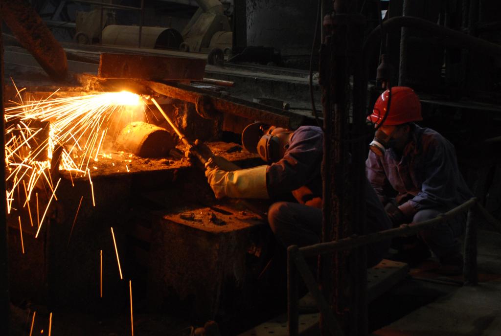 立秋,百米煙囪腳下。李師傅帶著徒弟從電爐尾氣脫硫塔順著人孔緩慢爬出來,安全回到地面?!懊摿蛩丝滓呀浄忾],收尾工作完成”。他一邊摘下安全帽,一邊跟電爐工序負責人進行著交接。