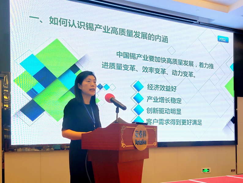 在大會報告環節,楊奕敏應錫業分會安排,緊緊圍繞“錫產業高質量發展”作主題報告。報告指出:當前,世界經濟形勢撲朔迷離、國際貿易環境深度調整,中國經濟社會發展進入新時代,在此大背景下,中國錫產業也要加快高質量發展,著力推進質量變革、效率變革、動力變革。