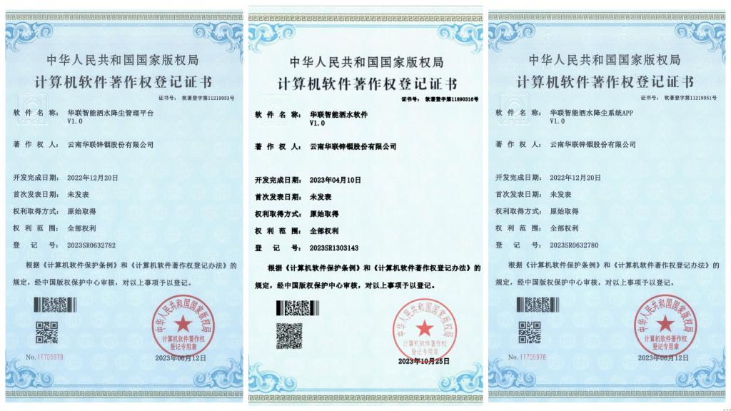 近日,云南華聯(lián)鋅銦股份有限公司“露天礦山粉塵監(jiān)測系統(tǒng)及智能規(guī)劃灑水降塵研究”科研項(xiàng)目管理軟件“華聯(lián)智能灑水軟件V1.0”獲國家計(jì)算機(jī)軟件著作權(quán)登記。