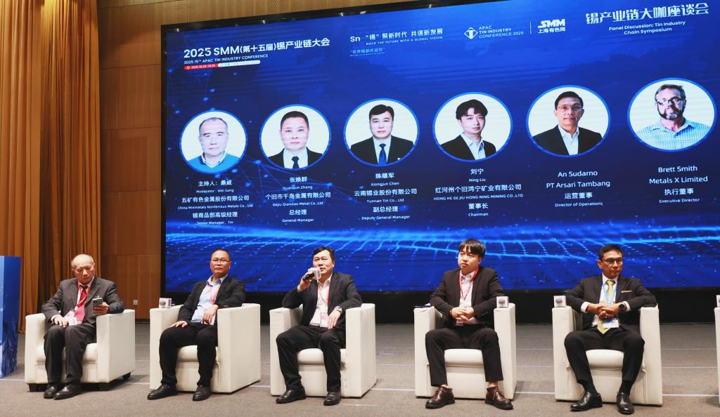 10月22日至24日,2025SMM(第十五屆)錫產業鏈大會在個舊舉行,本次大會由上海有色網主辦,錫業股份特邀協辦。云錫控股公司黨委副書記、副董事長、總經理韓守禮出席大會并致開幕詞。錫業股份黨委書記、董事長劉路坷參加開幕式并與多家企業與會代表交流。