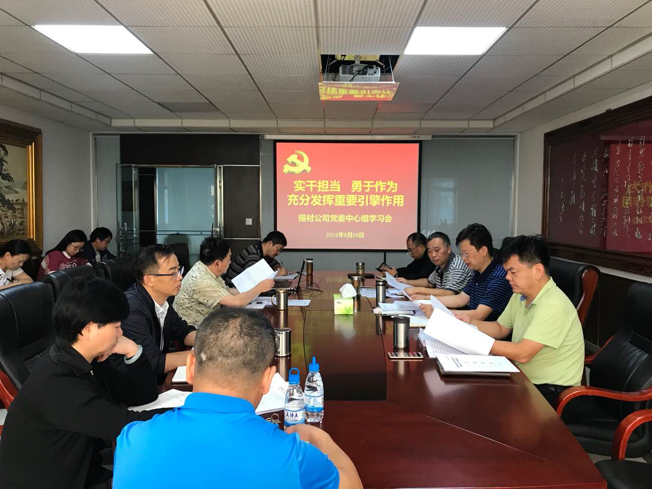 8月29日,錫材公司黨委以“實干擔當、勇于作為,充分發揮重要引擎作用”為主題,組織召開黨委理論學習中心組集中學習會,黨委書記、董事長王鵬飛主持會議。
