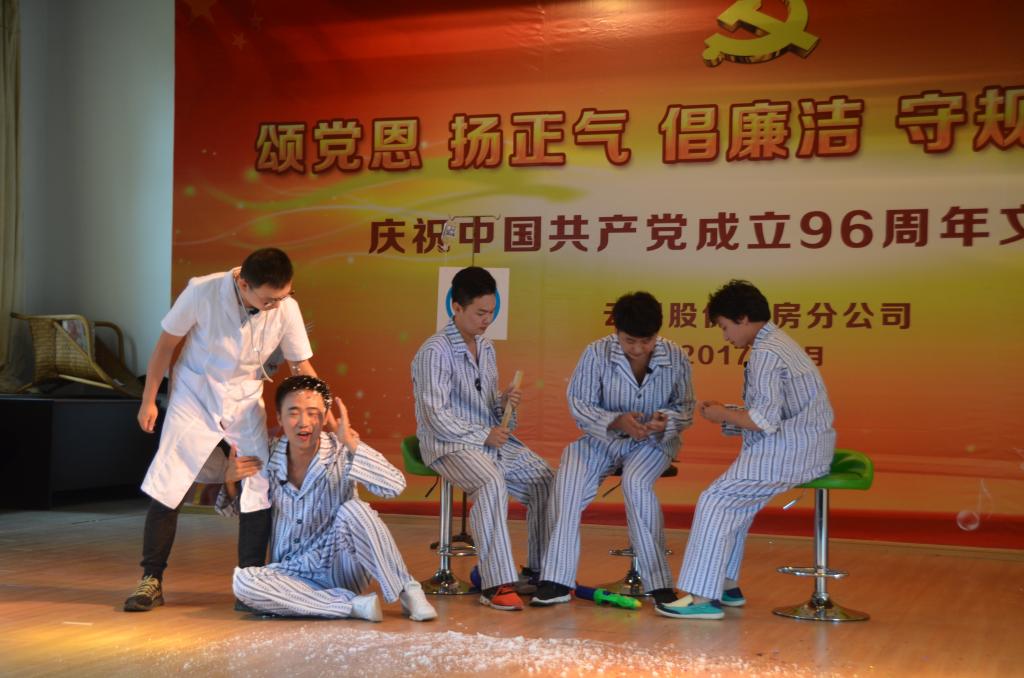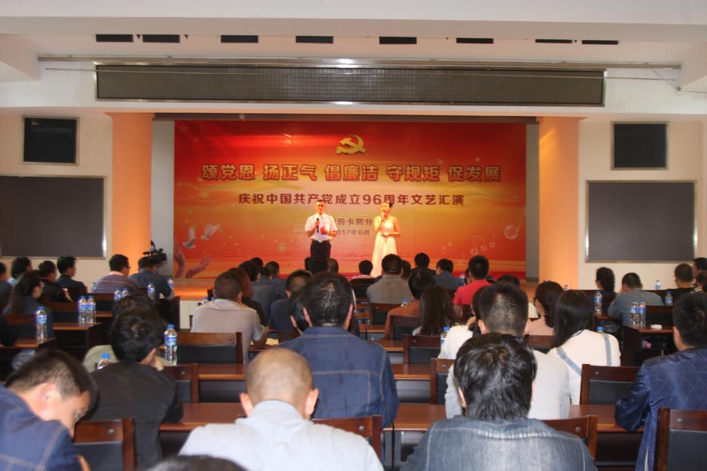 6月28日下午,卡房分公司黨委圍繞“貫徹六中全會精神,推進全面從嚴治黨” 黨風廉政教育月活動主題,舉辦了一臺以小品、情景劇、詩朗誦等貫穿廉潔從業(yè)主線的慶祝中國共產黨成立96周年文藝匯演