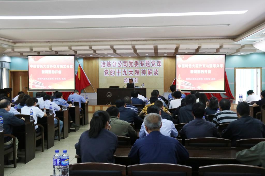 7月31日,冶煉分公司黨委舉辦專題黨課,邀請國防大學政治學院李保忠教授講授習近平新時代中國特色社會主義思想和黨的十九大精神。