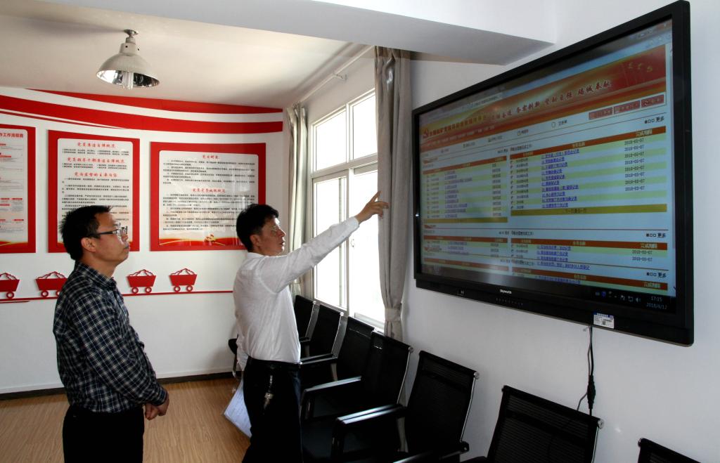 “目前有多少黨員?‘三會一課’制度是否按要求執(zhí)行?黨員對一系列黨建工作是什么態(tài)度?”姚家立在檢查三坑黨總支黨員活動室建設(shè)工作時(shí),詢問了黨建工作相關(guān)情況。三坑黨總支書記逐一回答了姚副書記的提問,并就所開展的黨建工作情況作了匯報(bào),其中,組織黨員觀看央視專題片《榜樣》,開展“看榜樣、學(xué)榜樣、爭做榜樣”活動;設(shè)立坑下黨員活動陣地,結(jié)合安全工作推行現(xiàn)場標(biāo)準(zhǔn)化定置管理等特色實(shí)踐活動。三坑坑長對坑口人力資源配置、今年以來的生產(chǎn)組織情況作了匯報(bào)。組織人力資源部門介紹并演示了正在測試的大屯錫礦黨建綜合信息管理系統(tǒng),該系統(tǒng)分為組織管理、黨員管理、干部人才管理、工作任務(wù)管理和學(xué)習(xí)交流五大模塊,具備權(quán)限分級、保密性強(qiáng)、覆蓋面廣和兼有互動等特點(diǎn),通過系統(tǒng)建設(shè)與管理,可實(shí)現(xiàn)基層黨建“標(biāo)準(zhǔn)化建設(shè)、程序化控制、痕跡化管理、常態(tài)化考核、持續(xù)化改進(jìn),特色化發(fā)展”。