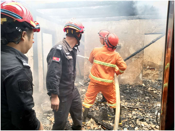 4月18日中午12時(shí)30分許,華聯(lián)鋅銦公司保衛(wèi)部接到都龍鎮(zhèn)政府打來的滅火救援電話:都龍鎮(zhèn)街頭新加油站對(duì)面一處民宅發(fā)生大火。保衛(wèi)部主任吳賢明立即指揮調(diào)度公司10名消防隊(duì)員及一輛消防車迅速趕到火災(zāi)現(xiàn)場(chǎng)投入撲火救援工作中。