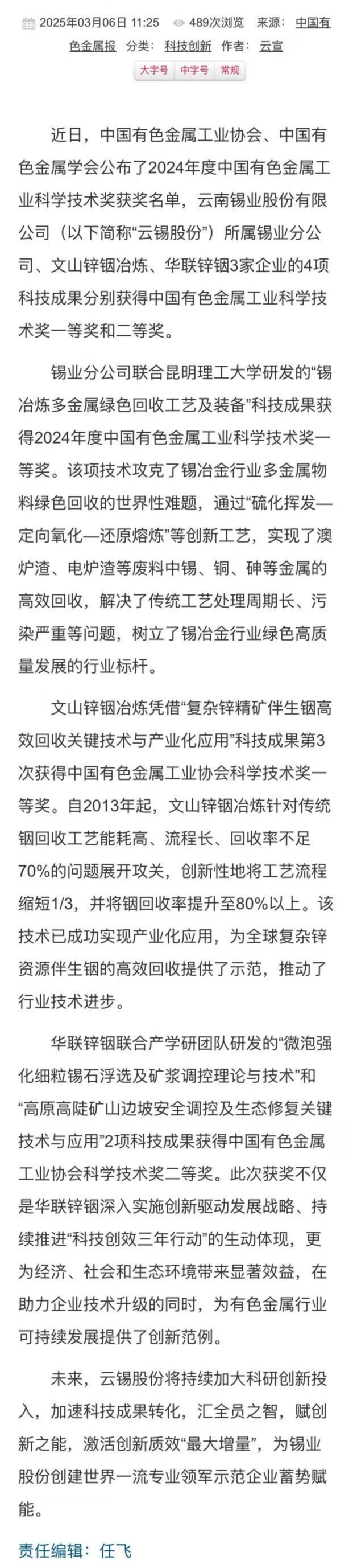 下一條:國務院國資委、云南國資、中國有色金屬報:云錫股份構筑競爭新優勢 奮進“開門紅”